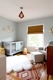 Baby H's nursery is going to be a bit more contemporary than the rest of the rooms in our home. Typically I gravitate toward traditional decor, but when looking for inspiration, I found myself drawn to more modern nurseries with eclectic accents. No frills, no fuss...no florals! (Gasp!)